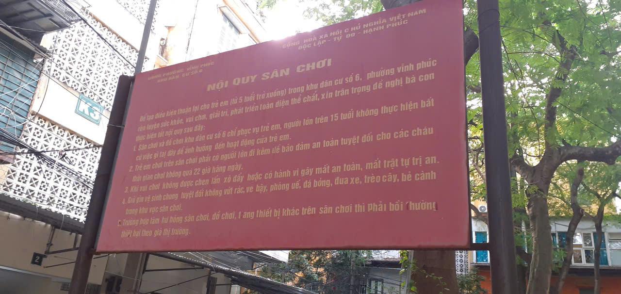 Ngoài ra, diện tích sân chơi trẻ em tại Hà Nội đang ở mức báo động, nhỏ bé đến mức vi phạm nghiêm trọng quy định pháp luật. Theo Quy chuẩn kỹ thuật quốc gia QCVN 01:2021/BXD của Bộ Xây dựng, mỗi trẻ em cần tối thiểu 2 m² không gian vui chơi công cộng, nhưng thực tế tại các khu tập thể như Nghĩa Tân con số này chỉ đạt 0,5-1 m²/trẻ, thậm chí thấp hơn ở nhiều nơi chỉ có vài chục mét vuông.