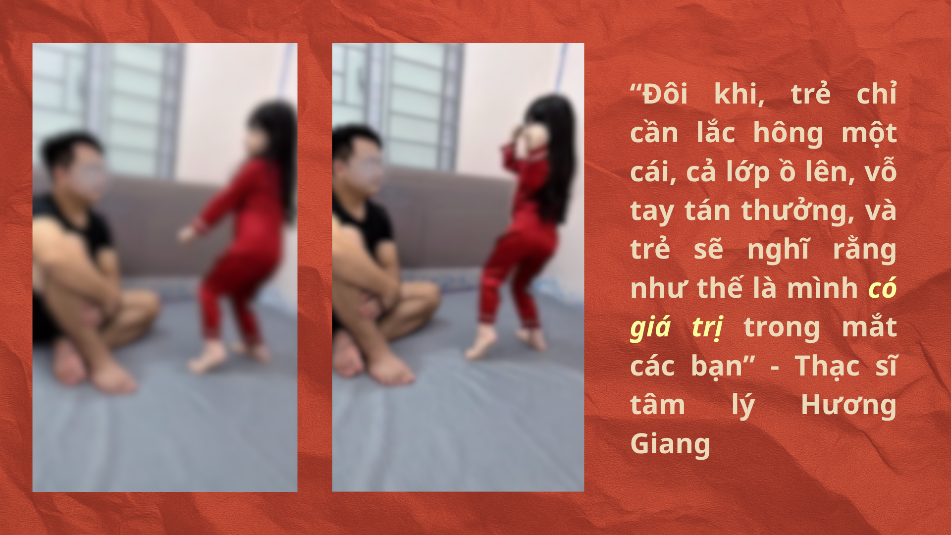Ở lứa tuổi từ mầm non, tiểu học, trẻ bắt đầu hình thành nhu cầu thể hiện bản thân, muốn được bạn bè chú ý và xem là “ngầu”, “hợp thời”. Trẻ ở độ tuổi mầm non, tiểu học rất thích bắt chước và thể hiện giống người lớn, vì điều đó mang lại cho các em cảm giác được lớn hơn thật sự. Chính nhu cầu được chú ý, được khen ngợi này khiến trẻ dễ chọn những hành động, vũ điệu hay bài hát đang “thịnh hành” để thể hiện mình.