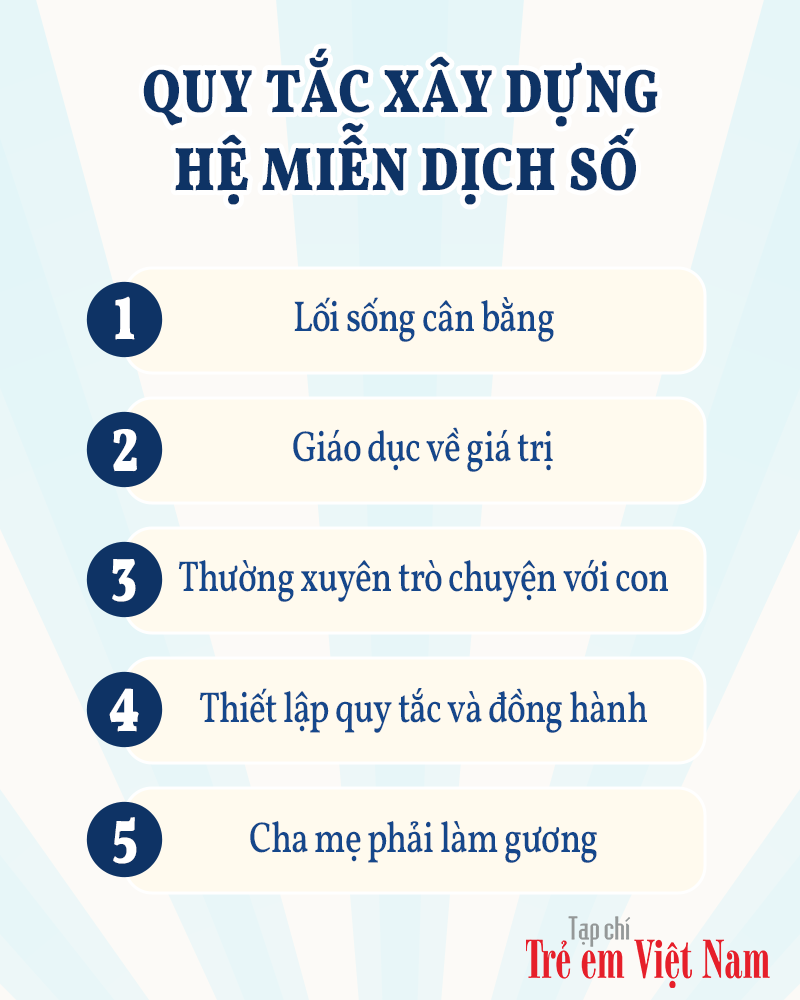 Từ phía gia đình, việc đối thoại và giáo dục là lá chắn quan trọng nhất. Theo chuyên gia, để phòng ngừa từ gốc, gia đình cần trang bị cho con một hệ miễn dịch số vững chắc, bao gồm: